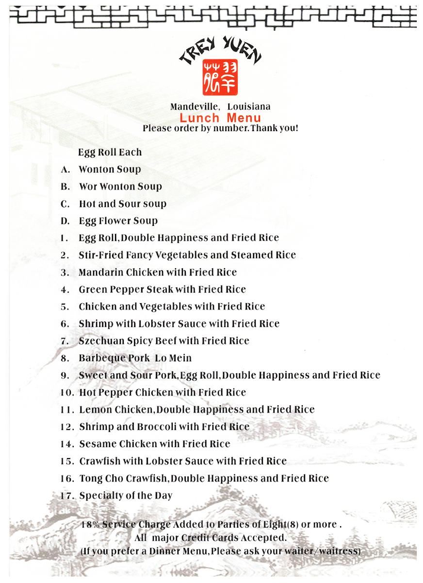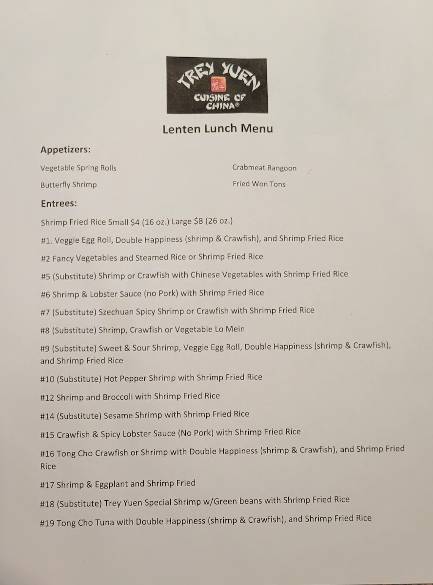 Trey Yuen Menu