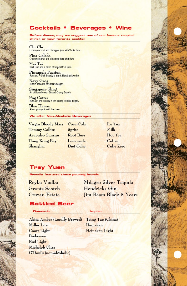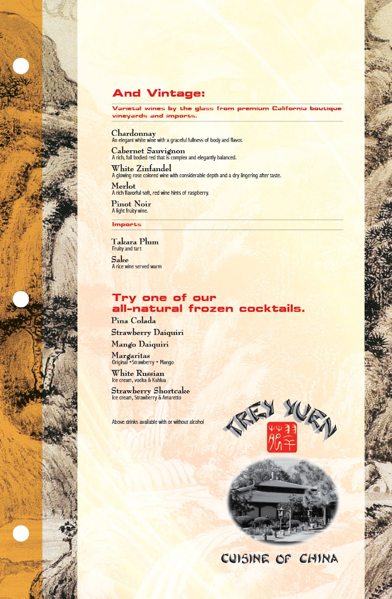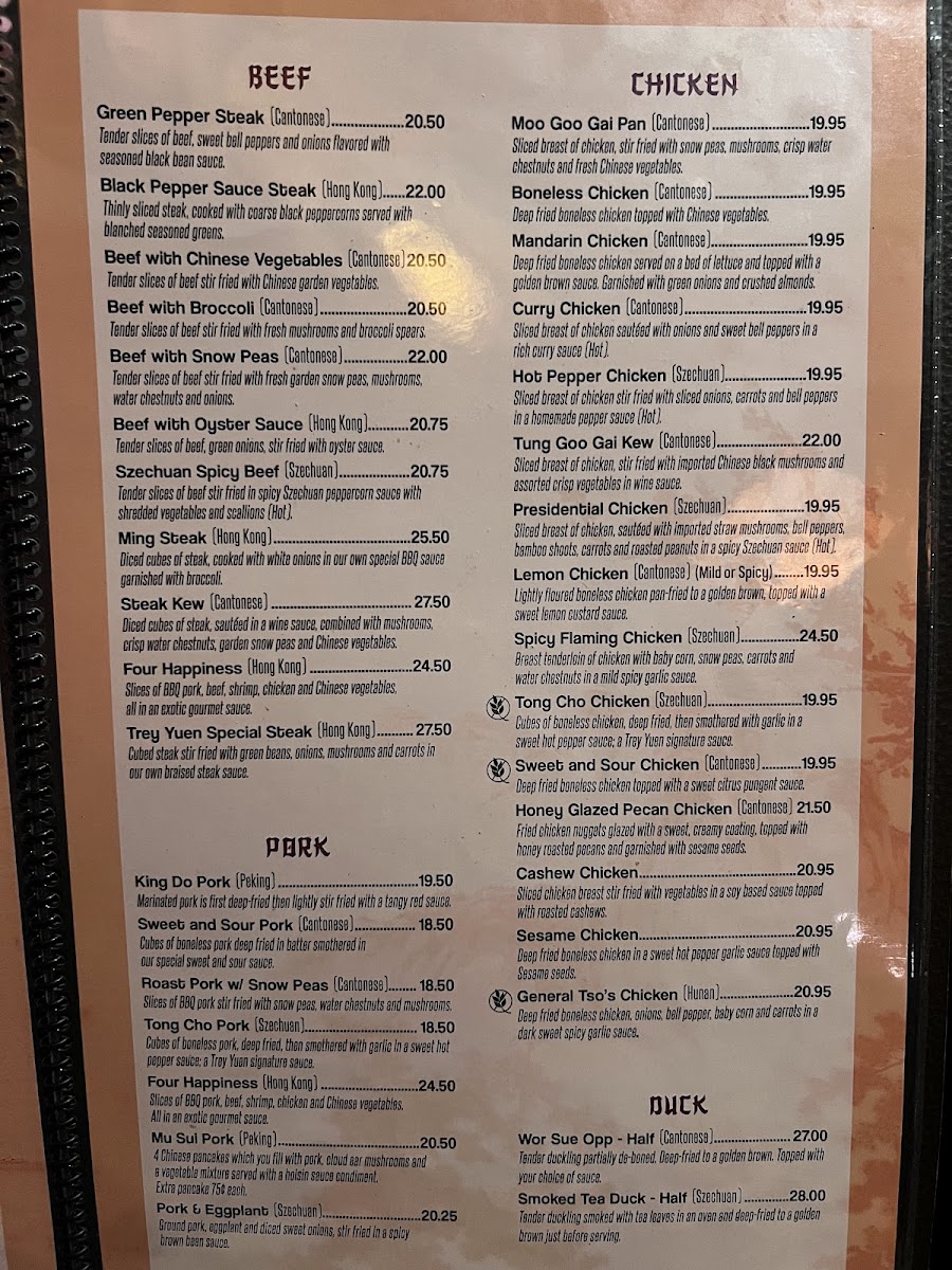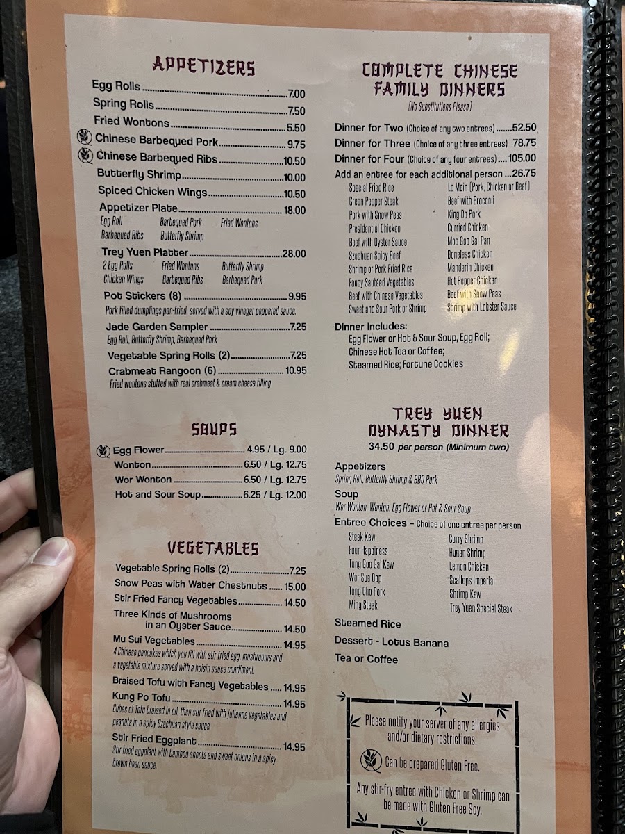 The menu at Trey Yuen reflects a blend of comfort and tradition, offering a variety of approachable dishes that suit both casual meals and relaxed gatherings. From classic Chinese favorites to fresh seafood specialties, the selection is thoughtfully crafted to complement the warm, inviting atmosphere of the restaurant.